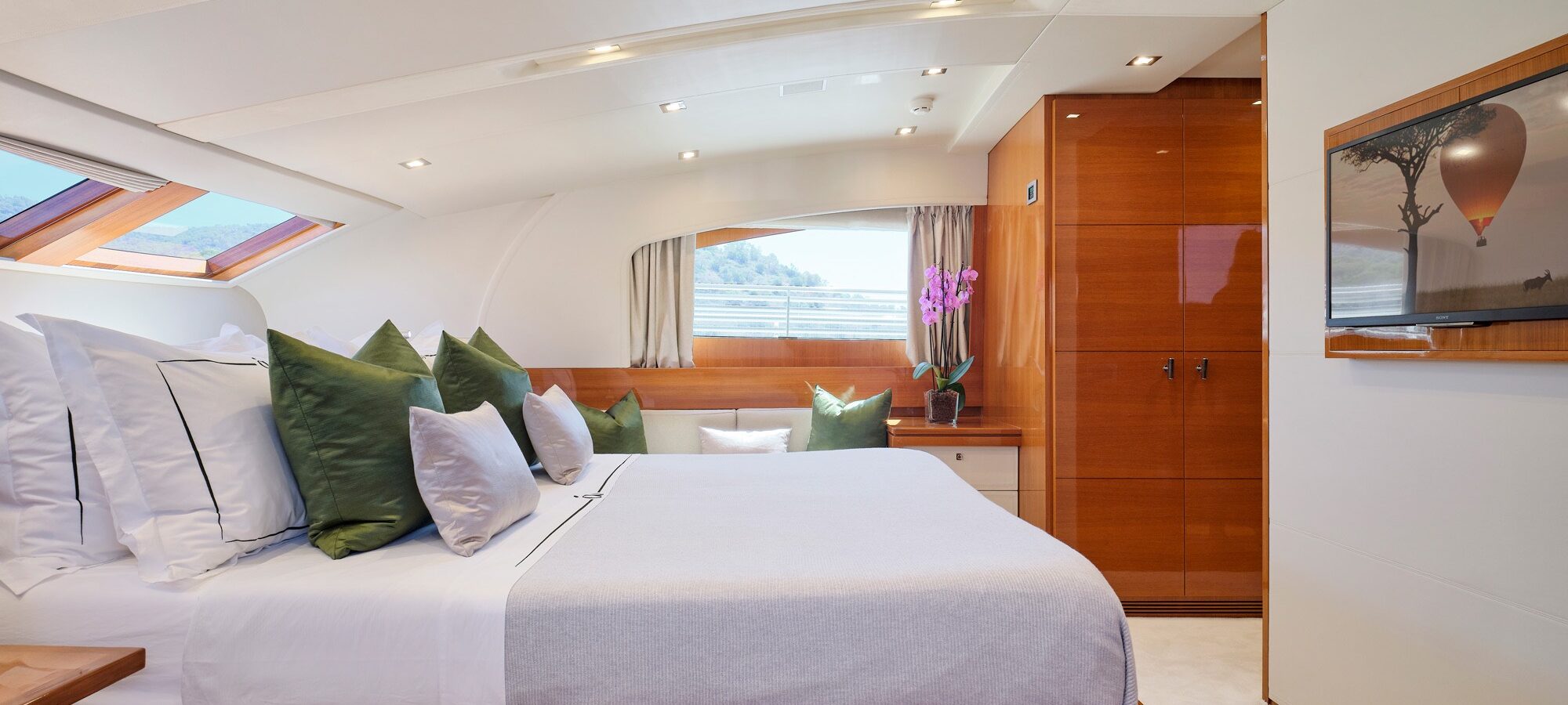Watch a film or your favourite show on Netflix or the satellite channels. The saloon features a 50″ Smart TV that you can hide or reveal and every cabin is equipped with a Smart TV as well.