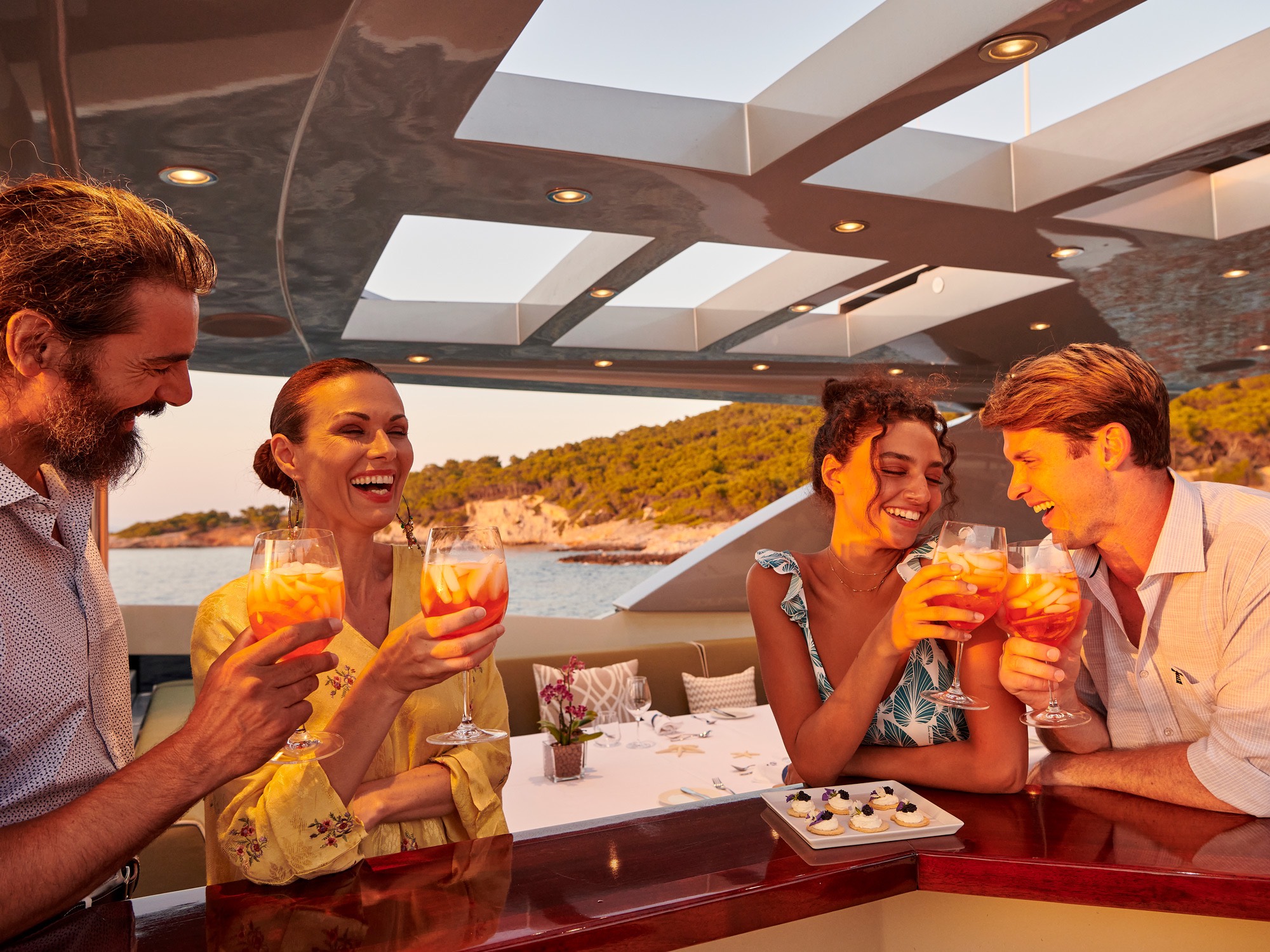 The crew will be happy to arrange the perfect gathering for you and your guests, either in the shade or under the stars thanks to the retractable roof.